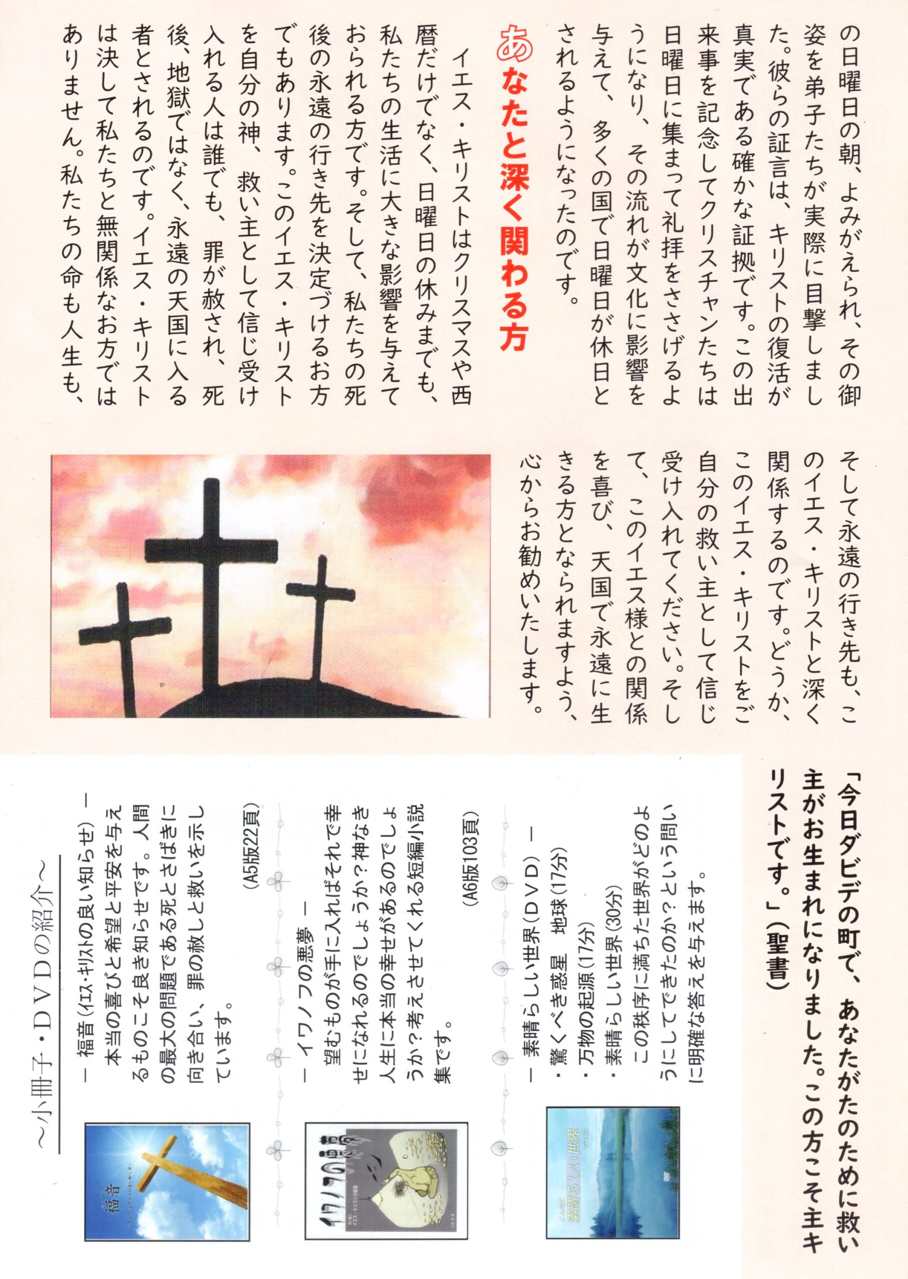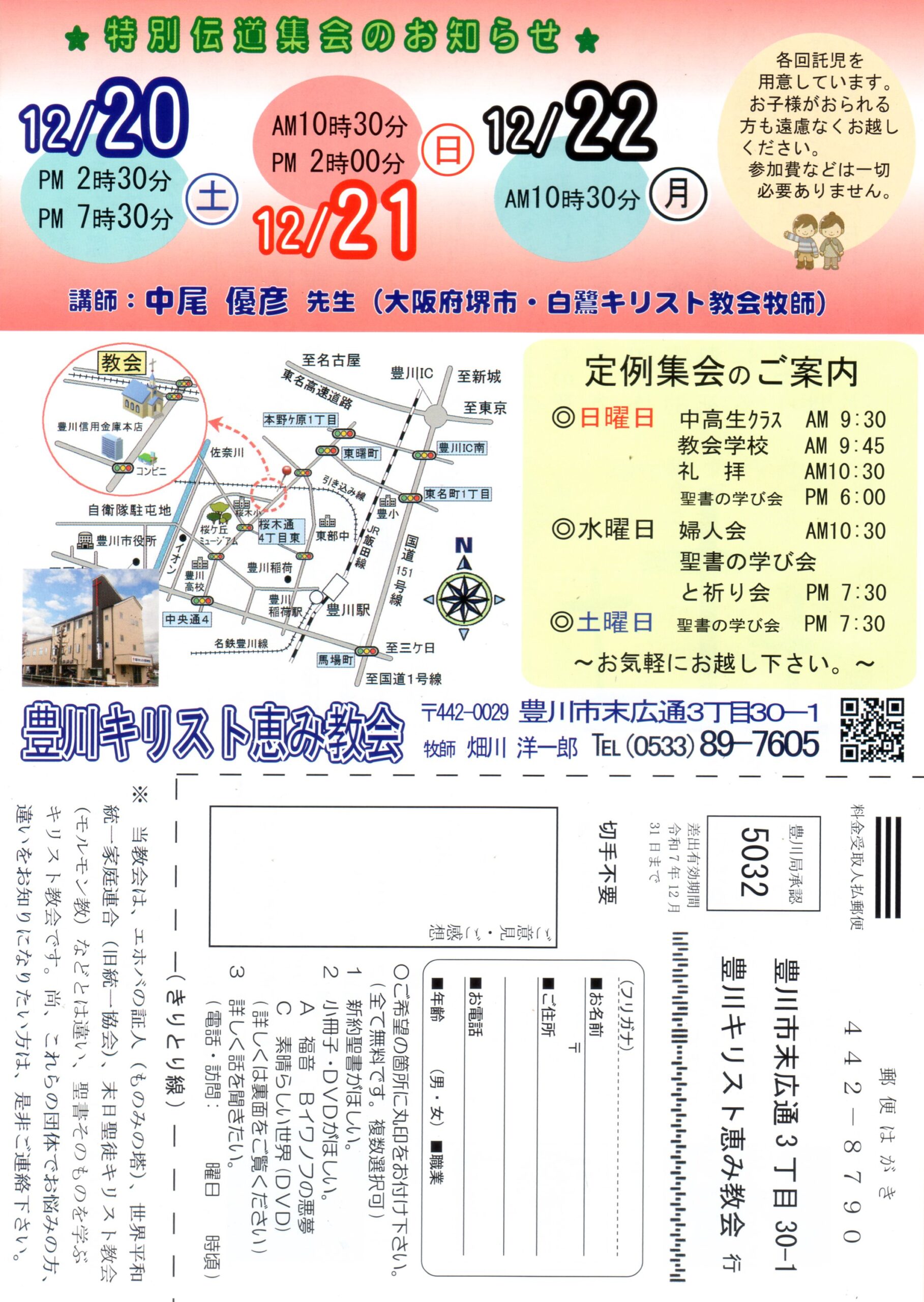 特別伝道集会に向けて配布中のチラシを掲載致します。